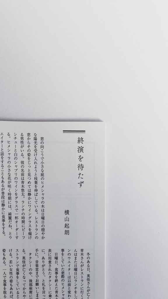 文芸誌 「文学と汗」にて短編小説「終演を待たず」寄稿